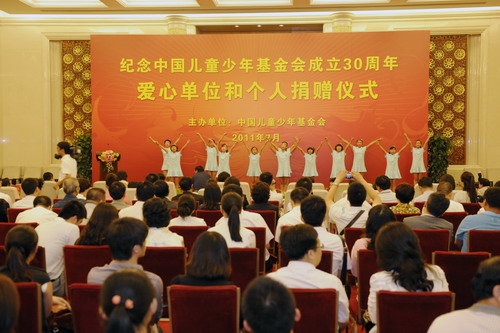 ??? 2011年7月5日,中国儿童少年基金会(下称“儿基会”)在北京人民大会堂举行“纪念中国儿童少年基金会成立30周年——爱心单位和个人捐赠仪式”,为支持“安康计划—儿童安全教育工程”(以下简称工程),我司捐赠现金15万元,用于建设壹间安全体验教室。