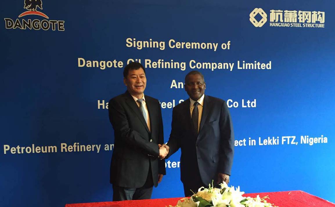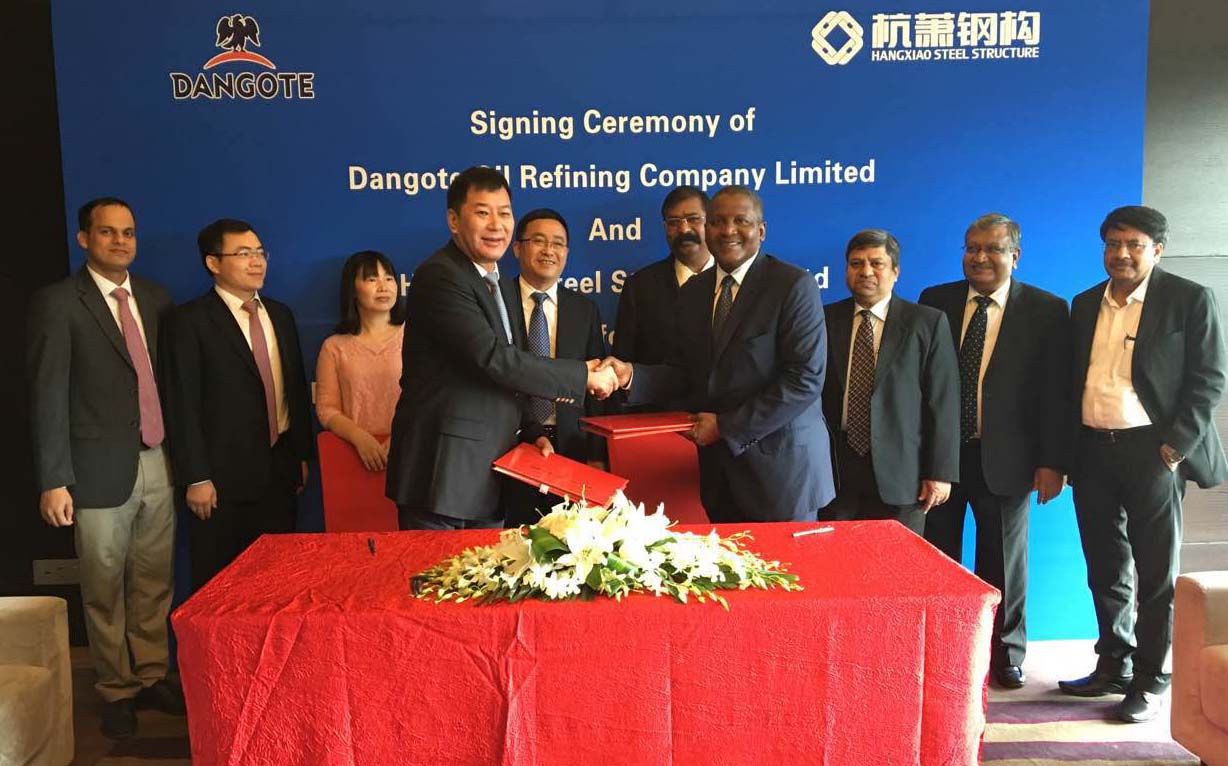 2016年9月1日,杭萧钢构股份有限公司与尼日利亚制造业巨头丹格特集团(Dangote?Group)在北京签订了1.12亿美元炼油厂钢结构供货合同。